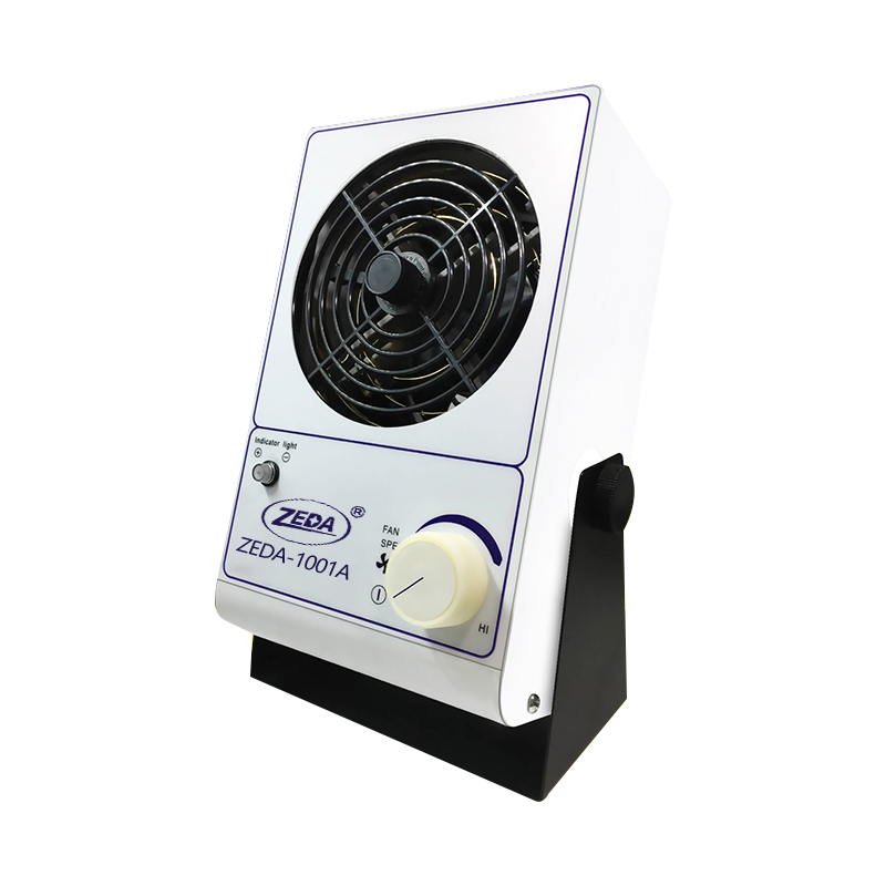 | ZEDA-1004A四頭離子風(fēng)機(jī) | 操作電壓:220V/50Hz 0.2A 消散時間:<2s@(1000v-100v,30cm測試距離,最高風(fēng)速) 消耗電流:0.08A/0.04A 環(huán)境溫度:22℃ 濕度≤60% 出風(fēng)輸出:1.39m/min 中和時間:距離 300mm 正0.9s 負(fù)1.0s 操作環(huán)境:0-40℃(無結(jié)露) 殘余電壓:距離 300mm 正 負(fù)≤±5V 氣流速度:10m/sec 風(fēng)量輸出:3.5CFM@0.7bar.5.3CFM@3.5bar 臭氧含量:0.03PPM(風(fēng)嘴前15英寸測) 離子平衡:自動離子平衡系統(tǒng)0±10V | 1、多頭風(fēng)機(jī),送風(fēng)距離長,快速出風(fēng) 2、高效除靜電,大范圍覆蓋操作區(qū)域 3、拆卸保護(hù)網(wǎng),阻止灰塵進(jìn)入,延長機(jī)器適用壽命 4、速度可調(diào),更高效除靜電 5、適用多種場合除靜電,高效方便 |